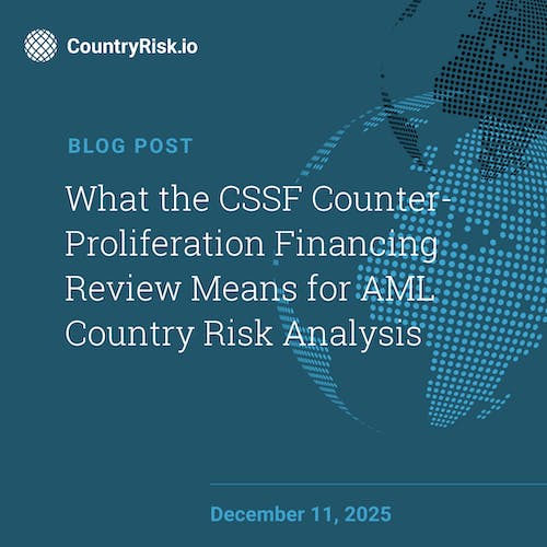 The CSSF review is a timely reminder of how rapidly expectations around counter-proliferation financing and AML controls continue to evolve—and why a structured, data-driven approach to country risk remains essential. At CountryRisk.io, we support compliance teams with risk classifications for 249 jurisdictions, AI-powered tools for conducting enhanced due diligence, and seamless access to a wide range of compliance-relevant datasets, including the EU High-Risk Third Country List, FATF country listings, the Peddling Peril Index, and many other AML indicators via CountryData.io. If you would like to learn more about our AML offering or discuss how our tools can strengthen your risk assessment framework, we would be delighted to speak with you. Feel free to reach out anytime ([email protected]).
