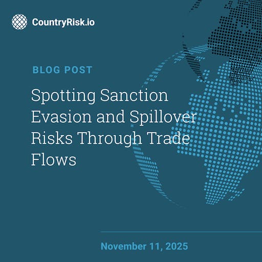 This article examines how trade flow data and AI-driven analysis on the CountryRisk.io Insights platform can help detect sanction evasion patterns, shifting trade routes, and emerging AML country risk hotspots.